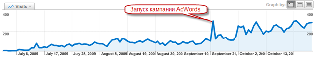 Пик в конце сентября является каким-то глюком статистики и связан с запуском рекламной кампании AdWords. Создание кампании было связано с необходимостью использования подарочного сертификата от Гугл, поэтому я не стал заморачиваться с оптимизацией стоимости клика. В итоге, с 22-го сентября по 6 октября было сделано 339 кликов по моим объявлениям стоимостью 285 гривен (около 34 долларов). Это принесло примерно 10-15 продаж ($1.375 с продажи). Т.е. рекламная кампания с автоматическими настройками без подарочного сертификата не окупается. Деньги на аккаунте еще остались и я планирую продолжить эсперименты, разобравшись в теме.